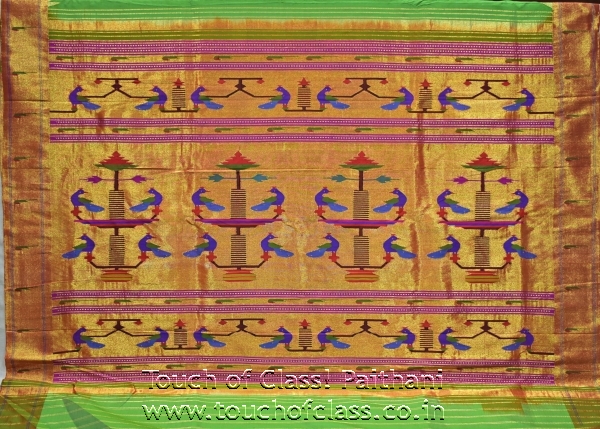 Gold Band Brocade Border Paithani Saree ~ Ensemble Peacock