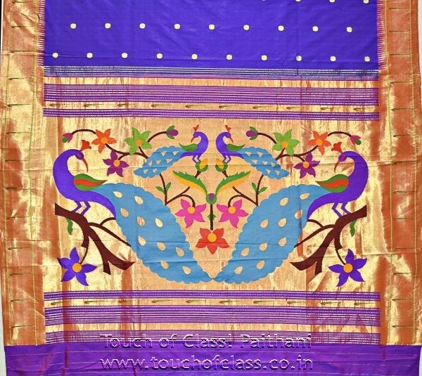 Delicate Muniya Border Paithani Saree ~ Dancing Peacock
