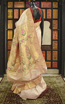 Paithani Saree | Color: Pearl White (Pink tint) |